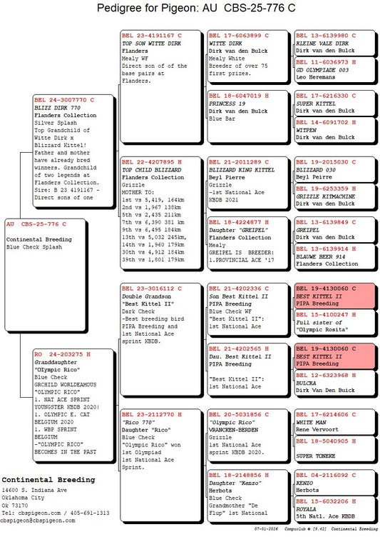 25-CBS-926 Blue cock. Grandson "White Freedom". Guy Van Der Auwera.