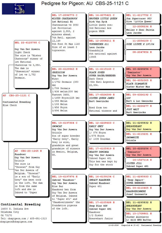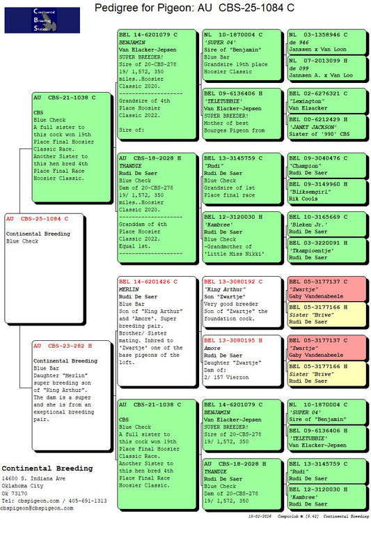 24-CBS-168 Blue cock. Double grandson "Benjamin" x "Thandie"