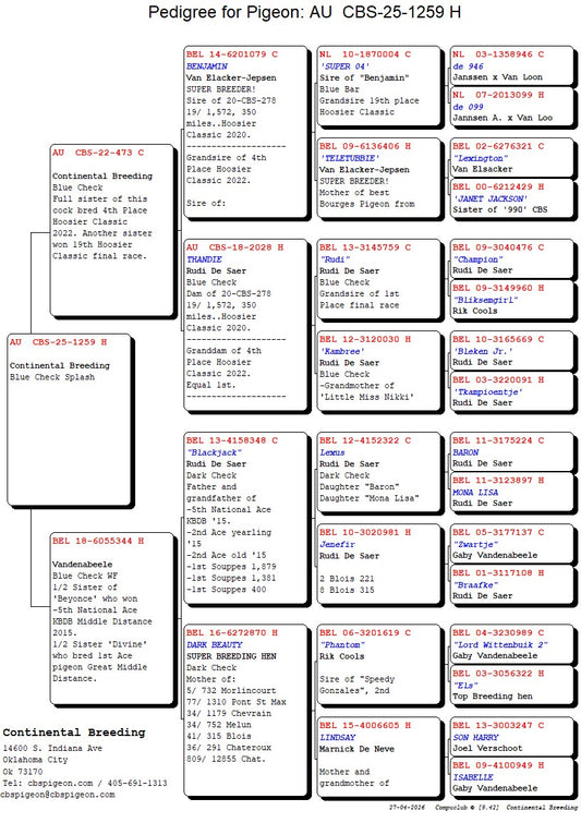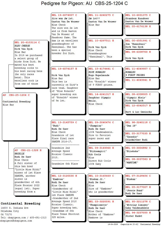 25-CBS-1204 Blue cock. Son "Bleu Cheese" & "Brielle"