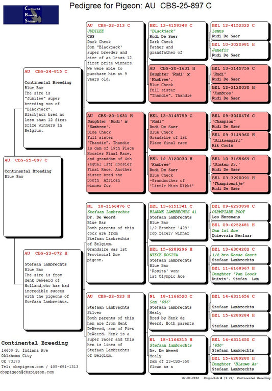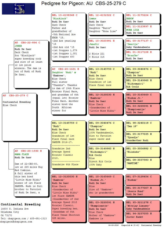 25-CBS-279 Blue check. Son "Mama Flair" super breeding hen.