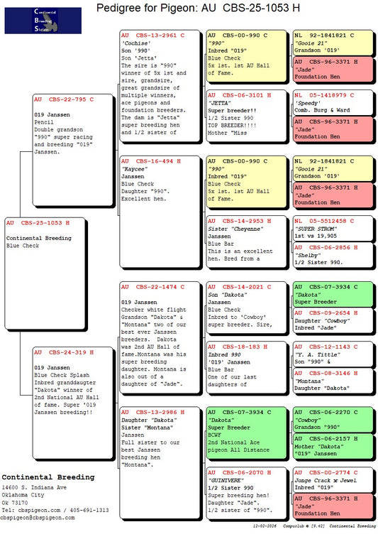 25-CBS-943 Blue cock. Inbred "Jade". 019 Janssen