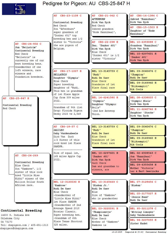 25-CBS-847 Red Hen. Granddaughter "Bellatrix"