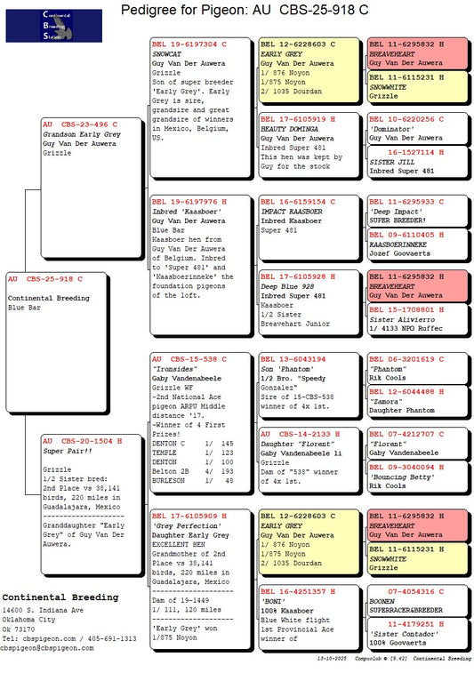 25-CBS-918 Blue Cock. Inbred "Early Grey"