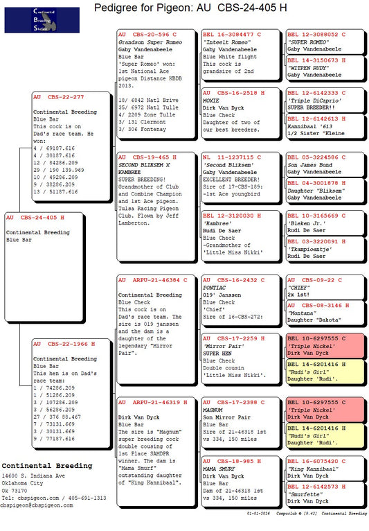 24-CBS-405 Blue Hen. Bred from two super racers.