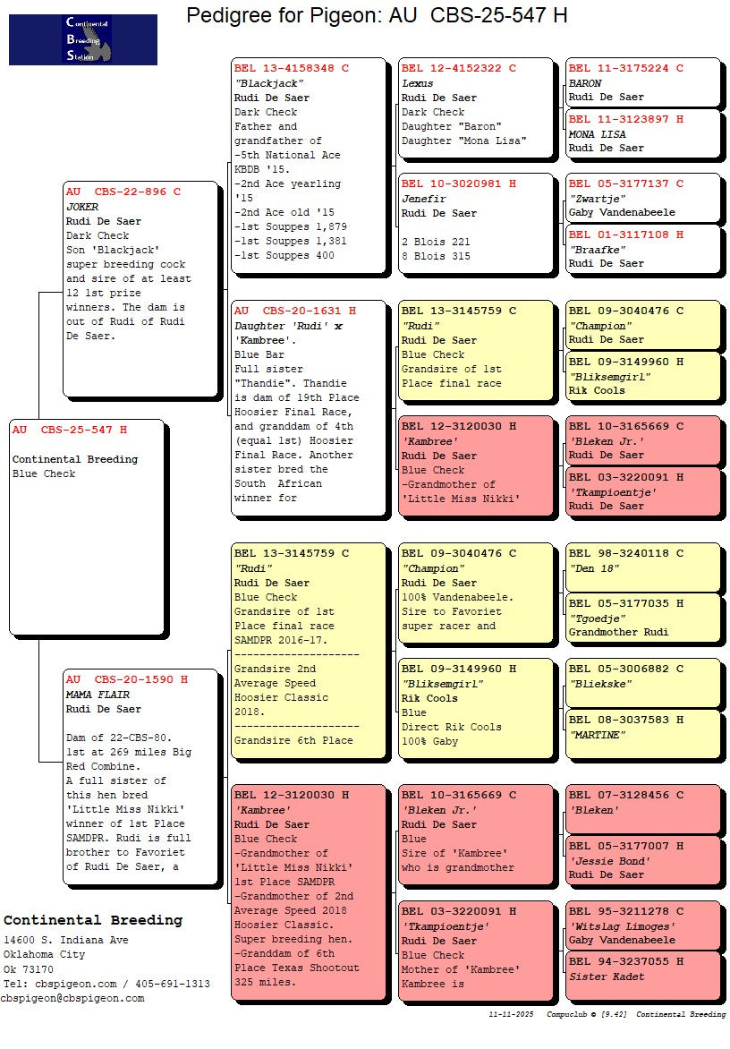 25-CBS-547 Blue check hen. Inbred granddaughter "Rudi", "Kambree".