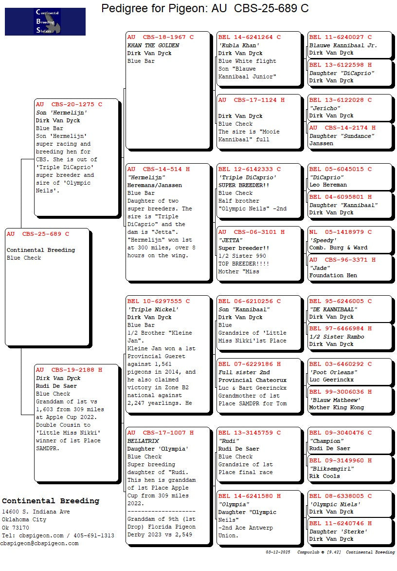 25-CBS-689 Blue Check Cock. Grandson "Bellatrix"