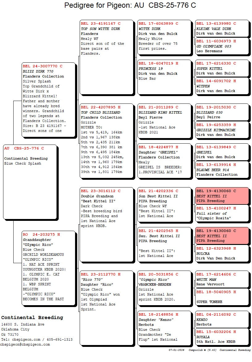 25-CBS-776 Blue check splash male. Excellent Kittel Blood.