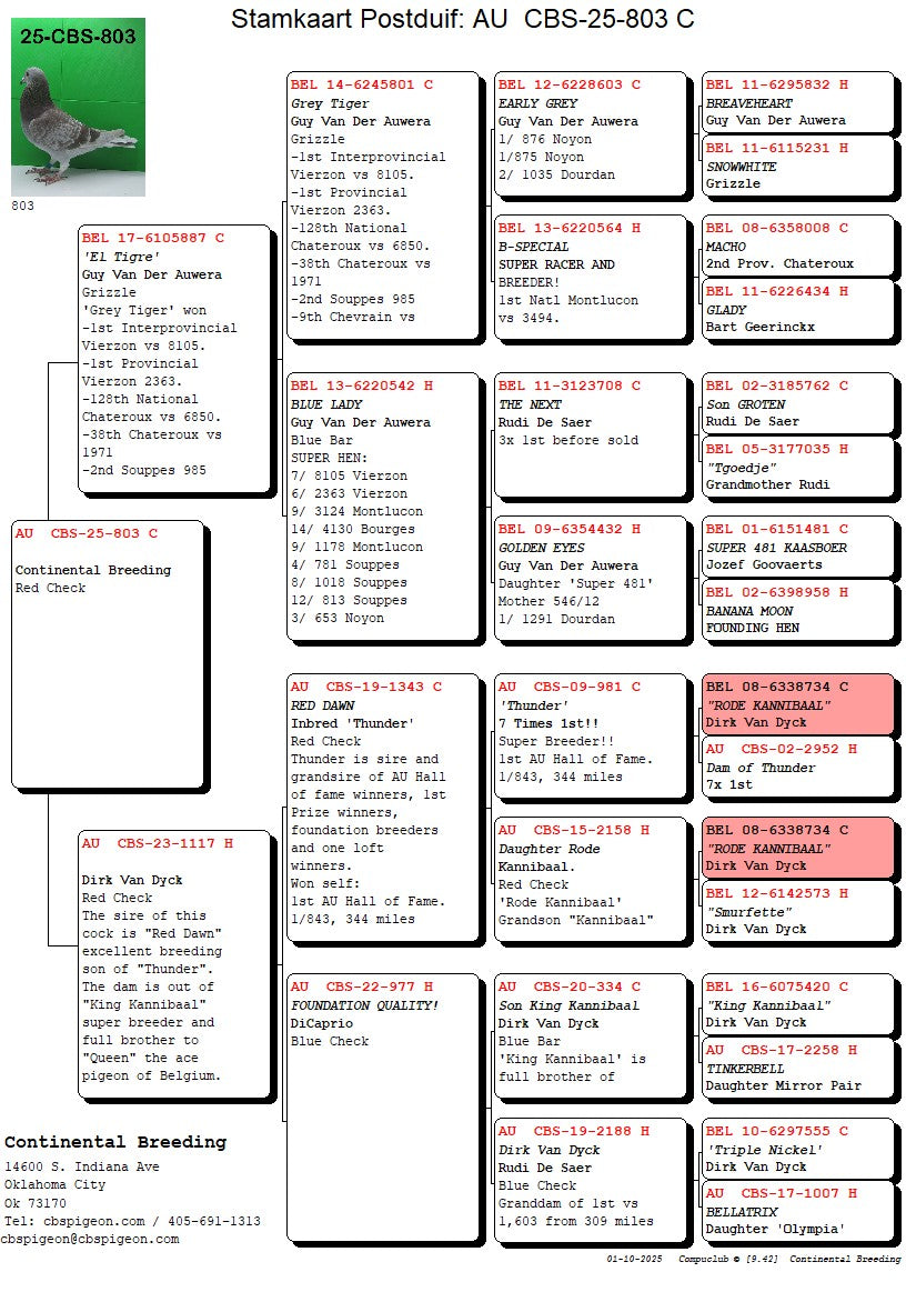 25-CBS-803 Red Check Cock. Sire is from Guy Van Der Auwera.