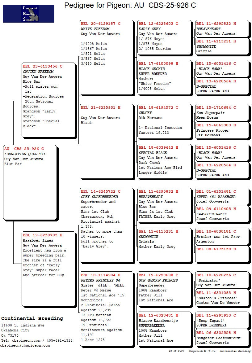 25-CBS-926 Blue cock. Grandson "White Freedom". Guy Van Der Auwera.