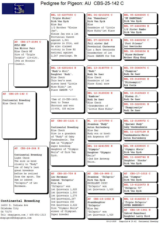 25-CBS-142 Blue check pied male. Son "Kylo Ren"