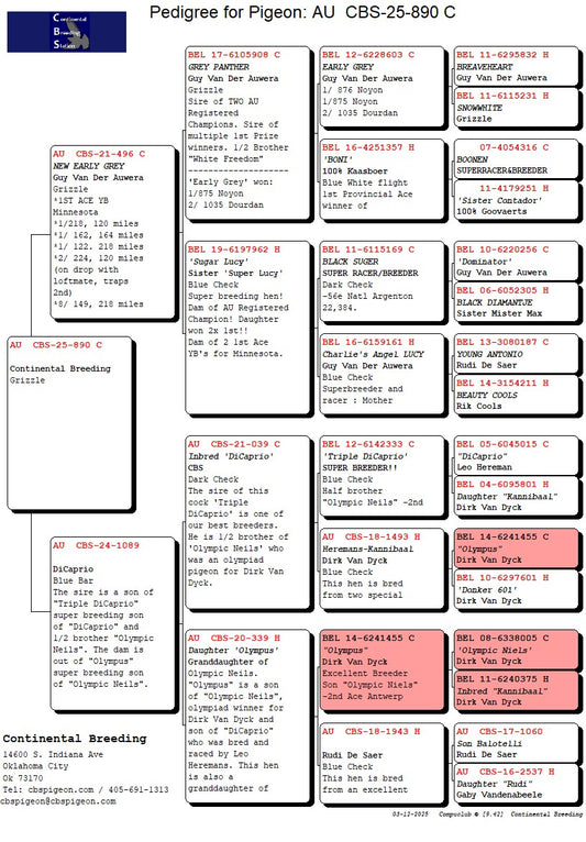 25-CBS-926 Blue cock. Grandson "White Freedom". Guy Van Der Auwera.