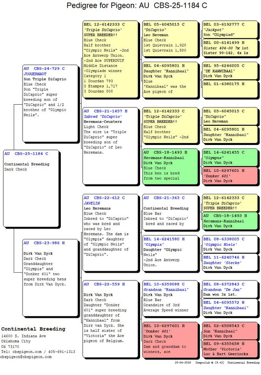 25-CBS-1122 Blue white flight cock. Grandson "Mr. Chateroux" and "Obsession" of Guy Van Der Auwera. Top Kaasboer LInes.